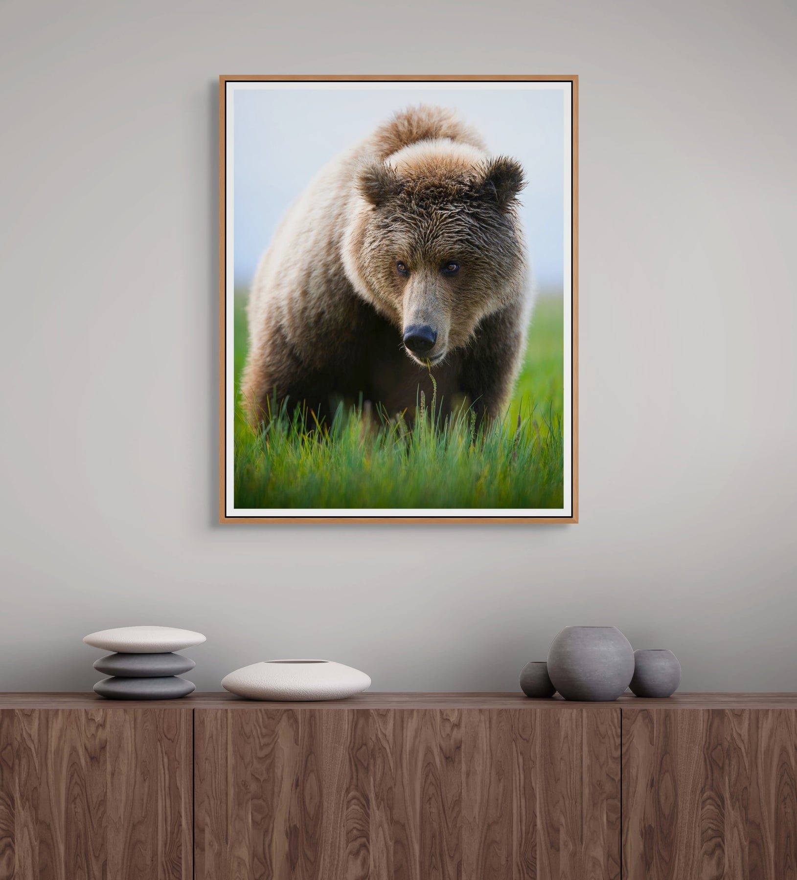 A very cute brown bear that I photographed in Lake Clark National Park grazing in an open meadow. This bear came right up to me and was very accommodating. It struck a pose making for this stunning portrait!